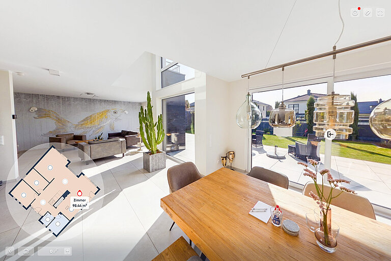 Mehr sehen, mehr erreichen – mit dem 360°-Rundgang. Wir präsentieren Ihre Immobilie modern und eindrucksvoll: Mit einem virtuellen 360-Grad-Rundgang ermöglichen wir Interessenten einen realistischen ersten Eindruck – jederzeit, überall und ganz bequem. So steigern wir die Sichtbarkeit, filtern echte Kaufinteressenten vor und sorgen für einen schnelleren, erfolgreicheren Verkauf.